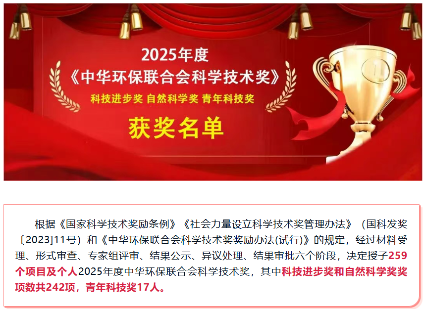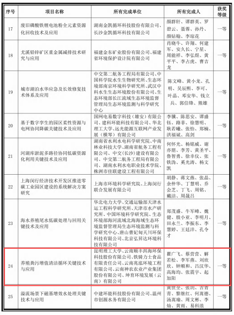 近日,2025年度中华环保联合会科学技术奖获奖名单正式公布,由昆明理工大学环境科学与工程学院瞿广飞教授领衔,联合云南顺丰洱海环保科技股份有限公司、铁骑力士食品有限责任公司等5家企业共同完成的“养殖粪污增值清洁循环关键技术与应用”项目,荣获2025年度中华环保联合会科学技术奖科技进步奖一等奖。