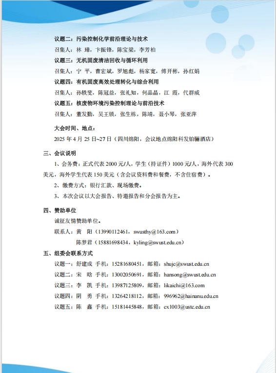 环境污染控制前沿进展暨 第五届固体废物污染控制化学学术会议 第二轮通知